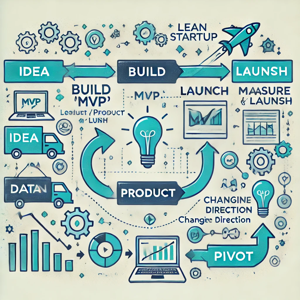 이 과정은 아이디어 → 만들기 → 제품 → 측정 → 데이터 → 학습을 반복하며, 필요에 따라 피봇을 통해 새로운 방향으로 전환하게 된다. 빠르게 실패하고, 그 실패를 통해 학습하면서 더 나은 제품을 만들어 가는 것이 린 스타트업 방식의 핵심이다.